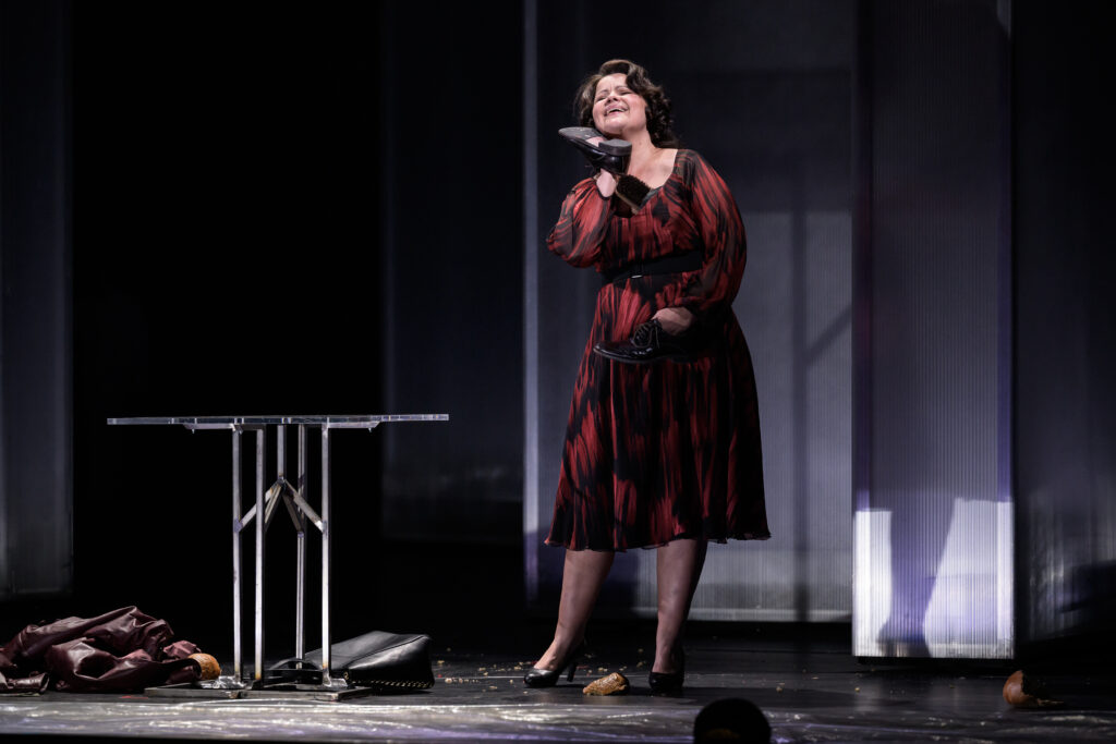 Zpočátku mohl mít divák pocit, že se katalánský režisér drží spíše při zemi, ovšem druhá část večera nemilosrdně odhalila nedostatek tvůrčí invence. Ten se projevoval v nesmyslných scénických akcích, které postrádaly jakýkoli hlubší význam či psychologickou motivaci. Dominantní plastové kvádry scénografky Anny-Sofie Kirsch sice zpočátku naznačovaly metaforu osamělosti a vnitřního zápasu hlavních postav, avšak postupně se měnily v pouhý dekorativní prvek, nasvěcovaný v nejrůznějších barvách bez hlubšího obsahu. Jejich přítomnost se tak stává spíše přítěží než oporou režijní koncepce. Místo aby režie usilovala hlubší rozehrání, „zaměstnala“ tým statistů, kteří mechanicky přesouvali zmíněné kvádry, aby v nich izolovali jednotlivé interprety do prázdných gestických obrazů. Samostatnou kapitolou jsou kostýmy Pauly Klein, které by svou nevzhledností samy o sobě nevadily, kdyby byly alespoň funkční. Bohužel tomu tak není – jen občas podtrhují charakter jednotlivých postav či jejich proměnu a občas působí spíše nahodile. Namísto aby přispívaly k psychologickému prohloubení a celistvosti inscenace, stávají se dalším prvkem vizuální neujasněnosti a koncepční roztříštěnosti.