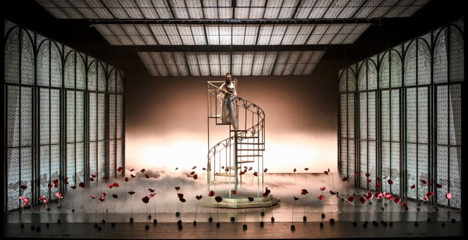 Inscenační tvar svěřený režisérce Fischerové a jejímu týmu (scéna a kostýmy Lucia Šedivá, světelný design Daniel Tesař) odpovídá v současnosti převažující divadelní estetice, opírajíce se o minimalistickou scénografii se silnou pohybovou složkou (choreografie Zuzana Lisoňová). I když je v této opeře předepsaných několik baletních scén, režisérka se rozhodla doplnit pohyb i do dalších míst, byť někdy jen v podobě běhání tanečníků po prázdné scéně. Adekvátnost a míra tohoto pohybu je věcí subjektivního vnímání. Je ovšem faktem, že tato opera, původně zamýšlená jako oratorium, má vícero statičtějších ploch. Výrazná symboličnost byla patrná v opakovaném používání rudých divokých máků a velkých luceren. První, dle slov režisérky v jinak kvalitně zpracovaném programovém bulletinu, jakožto symbol „krve, oběti padlých, omámení, smrti a současně nové naděje a nového života“. Druhý zřejmě jako symbol intimity hlavních aktérů. Některé scénografické prvky byly nicméně výslovně samoúčelné, především točité schodiště uprostřed prázdné scény. Jiné, praktičtější, jako by doputovaly z jiných oper: velké bílé sofa jako vystřižené z Traviaty či Fedory. Patrná byla nicméně snaha o rozpracování psychologického charakteru hlavních postav. Patřičně spektakulární bylo velké finále 3. jednání zborcení pohanského chrámu.